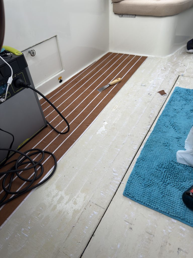 Unsere Wahl fiel diesmal auf einen speziellen Vinylboden (Nautiflör), der für den anspruchsvollen Einsatz auf Booten produziert wird.